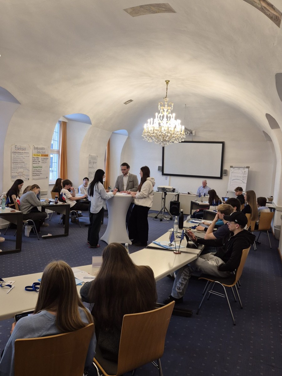 ​Vom Schulalltag direkt auf das diplomatische Parkett: Im Rahmen der EuroNet-Projekttage vom 02.02.bis 04.02.2026 besuchten Schülerinnen und Schüler aus den Wirtschaftskursen der Jahrgangsstufe Q12 das Bildungszentrum Kloster Banz. Drei Tage lang stand der Unterricht im Klassenzimmer hinten an – stattdessen schlüpften sie in die Rollen von EU-Abgeordneten, um im Rahmen eines Planspiels über die Zukunft Europas zu debattieren und zu entscheiden.