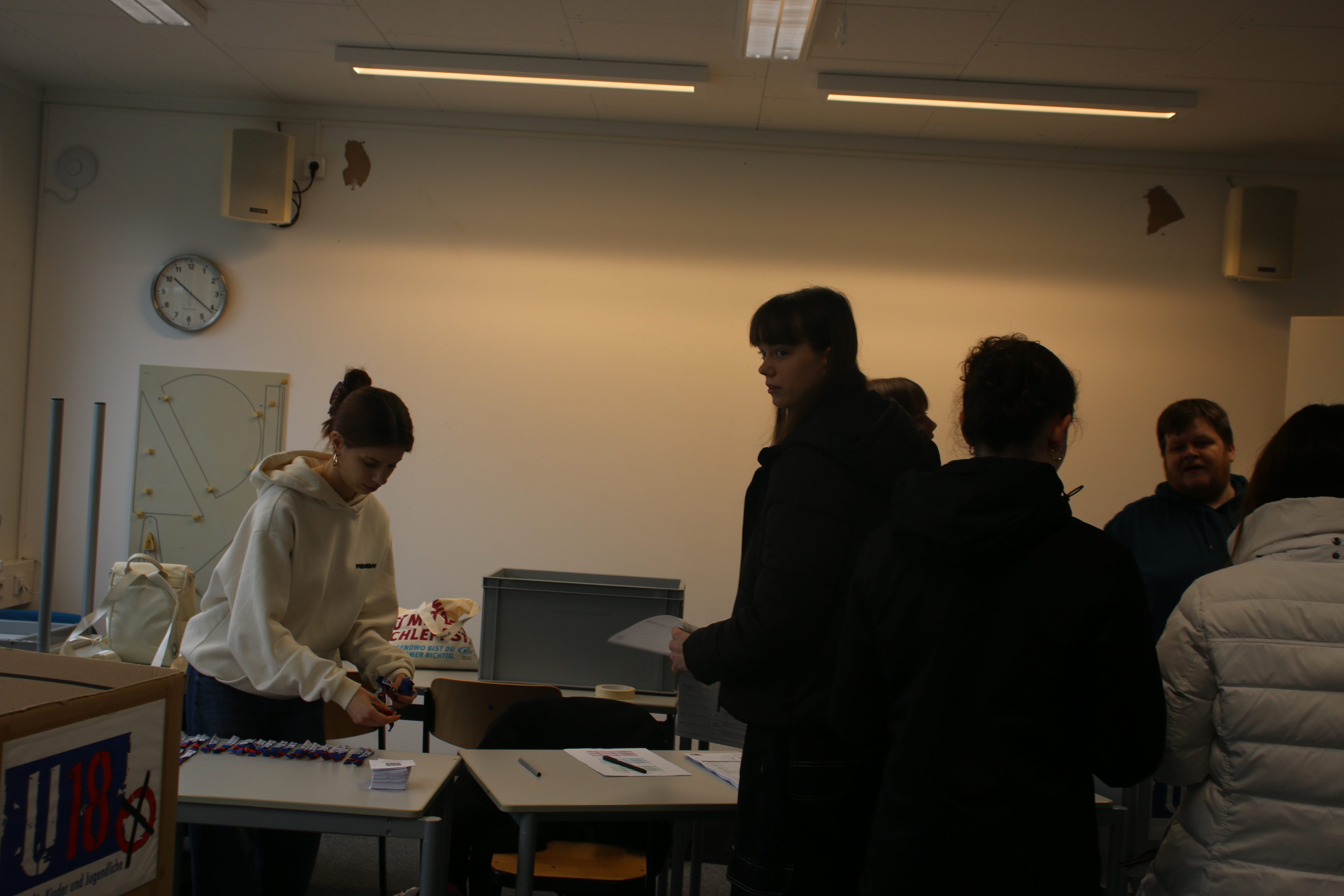 Vorab wurden die Schülerinnen und Schüler im Rahmen eines Peer-to-peer-Projekts von unserem Leistungskurs Politik und Gesellschaft zu verschiedenen Parteien und zum Wählen selbst informiert.