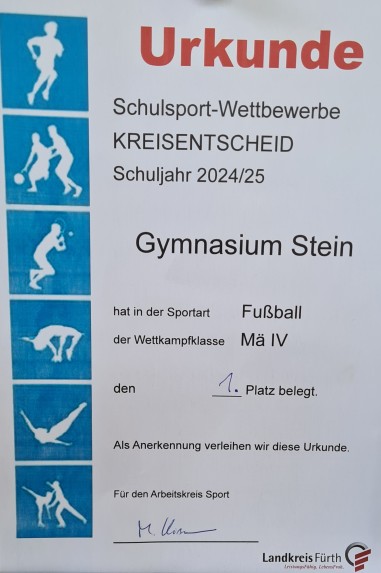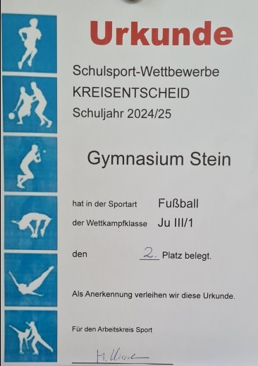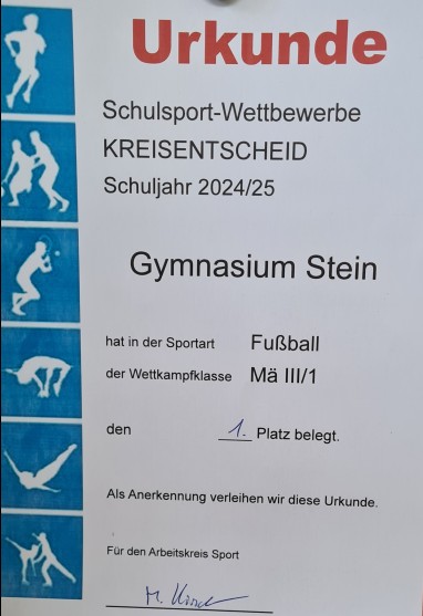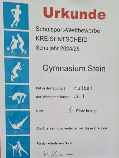 Startseite »Allgemein»Fußballerfolge für das Gymnasium Stein: Kickerinnen und Kicker unserer Schule spielen sich auf Kreisebene nach oben!