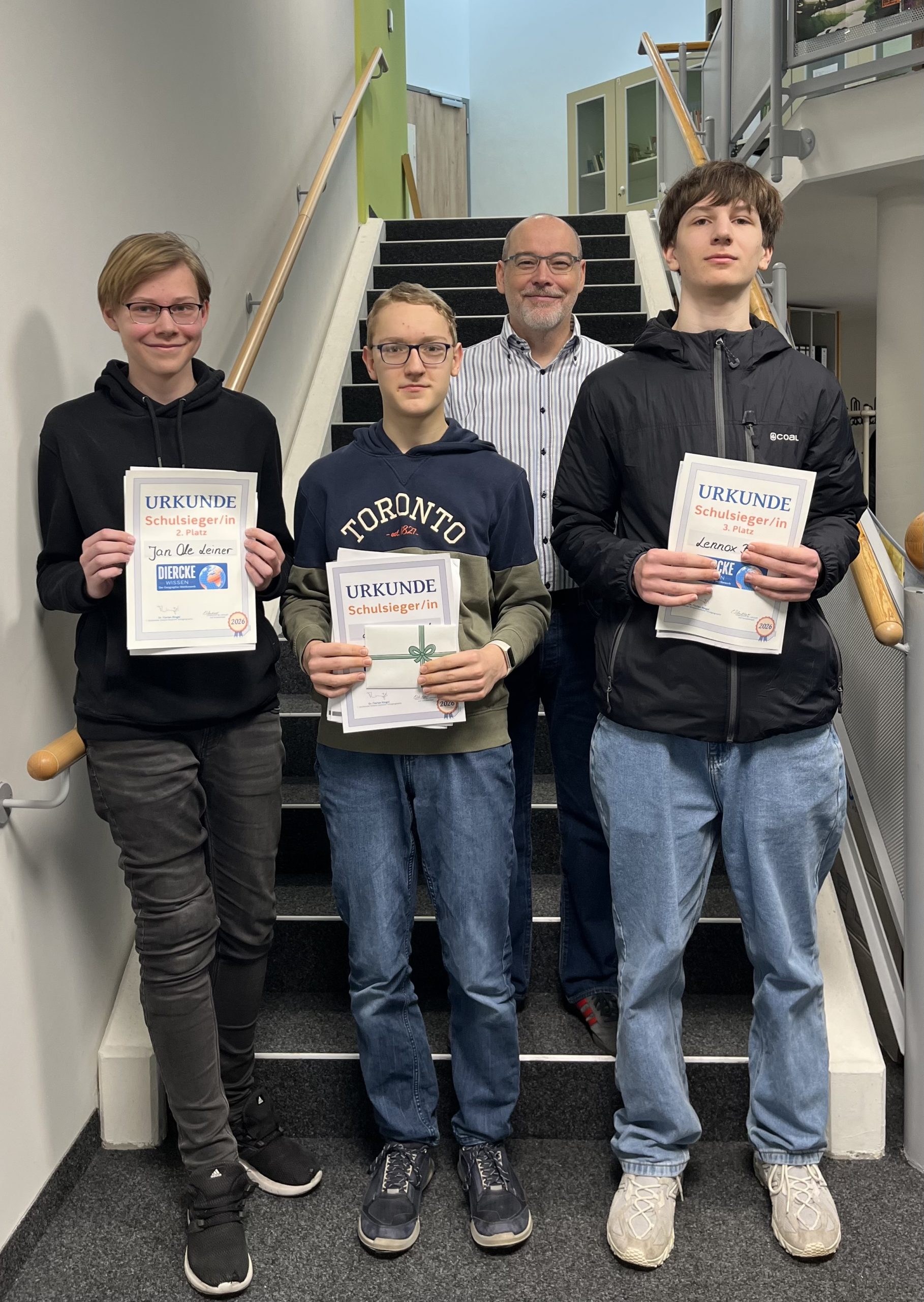 Auch in diesem Schuljahr nahmen interessierte Schülerinnen und Schüler der siebten und zehnten Klassen am Schülerwettbewerb Diercke WISSEN teil. Am 22.01.2026 beantworteten die Schülerinnen und Schüler einen 20-minütigen Fragebogen, um ihr geographisches Wissen unter Beweis zu stellen. Lucas Schwab (10a) konnte sich als Schulsieger gegen seine Mitschülerinnen und Mitschüler durchsetzen und qualifizierte sich für den Landesentscheid in Bayern.