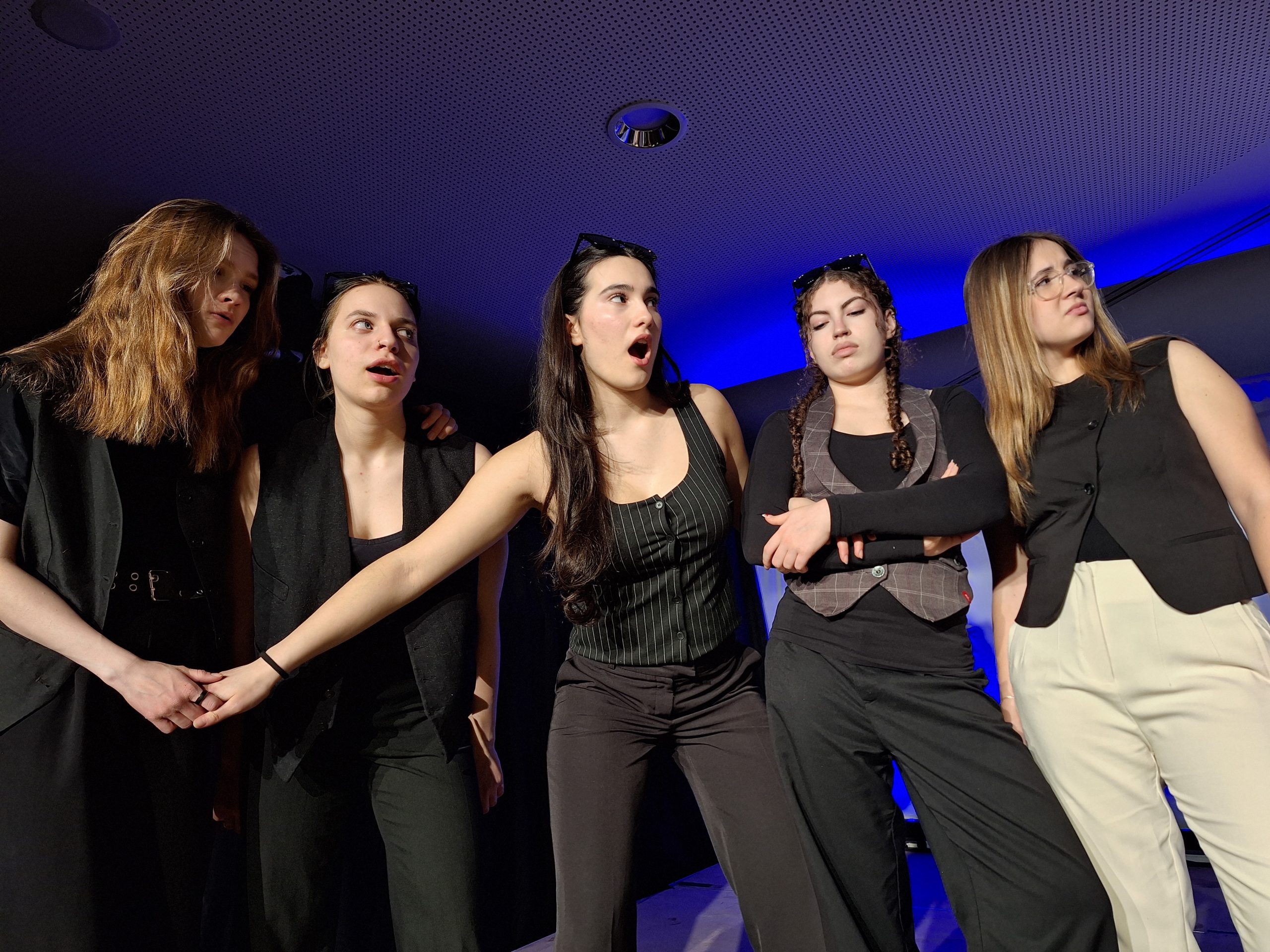 Die Probenzeit war allerdings nicht immer einfach. Die Zusammenarbeit im großen Ensemble war oft sehr anstrengend und forderte viel Geduld, Organisation und Durchhaltevermögen. Manchmal kamen sogar Zweifel auf, ob wir es wirklich schaffen würden, das Stück am Ende aufzuführen. Trotzdem haben wir als Gruppe immer weitergearbeitet und uns gegenseitig motiviert. Rückblickend hat uns genau diese intensive Zusammenarbeit auch sehr zusammengeschweißt.