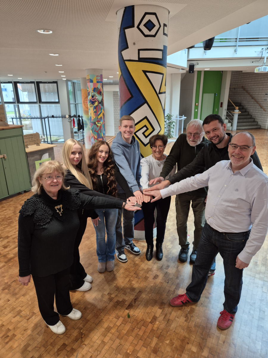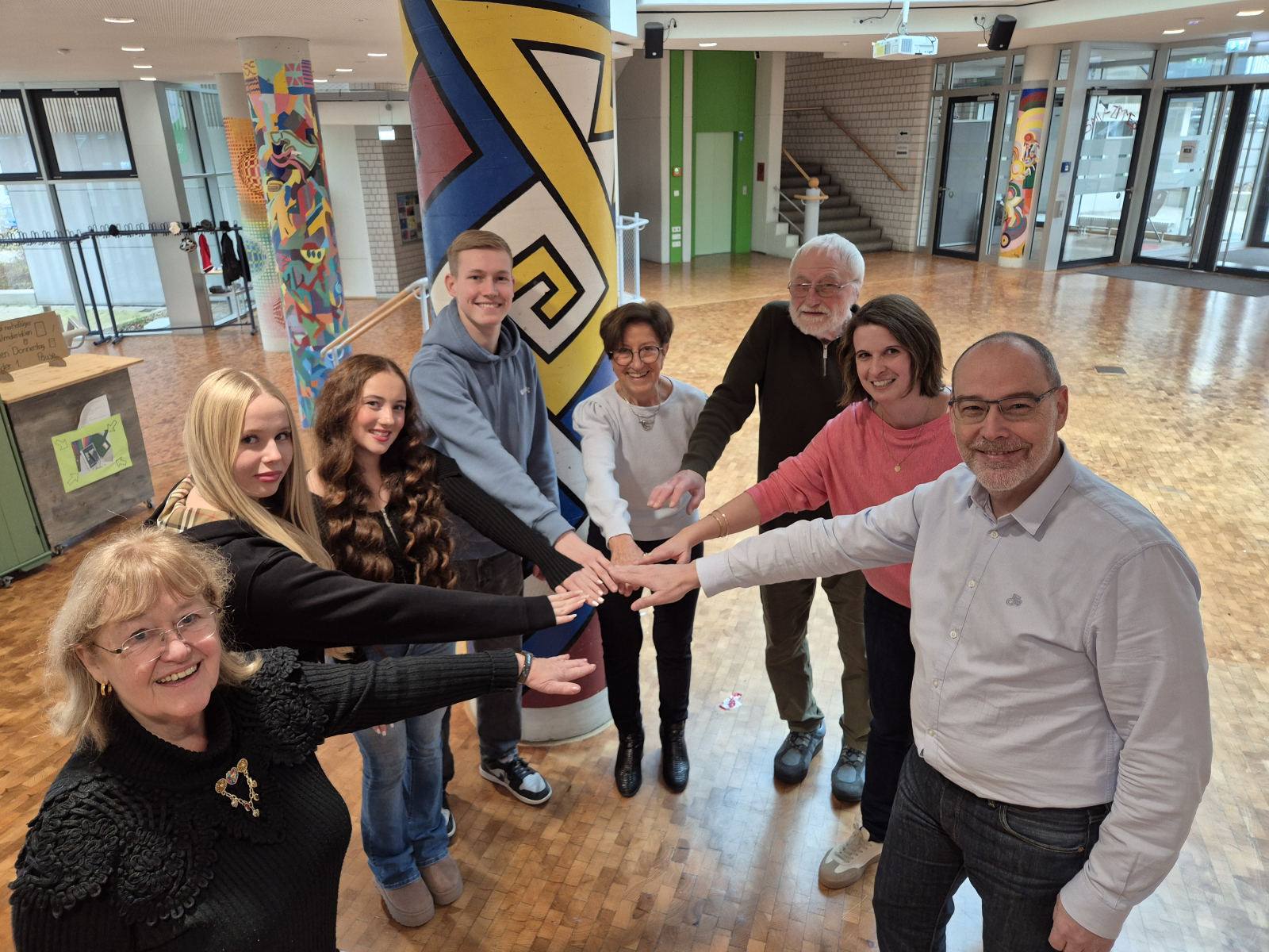 Es ist schön zu sehen, wenn Menschen zusammenkommen und sich gemeinsam über eine gute Sache freuen: Am Freitag, 28.11.25 haben wir uns wieder mit den Verantwortlichen des Sozialvereins Lichtblick e.V. aus Stein – Frau Dippold, Frau Ibrahim und Herr Lang- getroffen, um unsere Spende aus dem Helping Hands Projekt des vergangenen Schuljahres zu übergeben.
