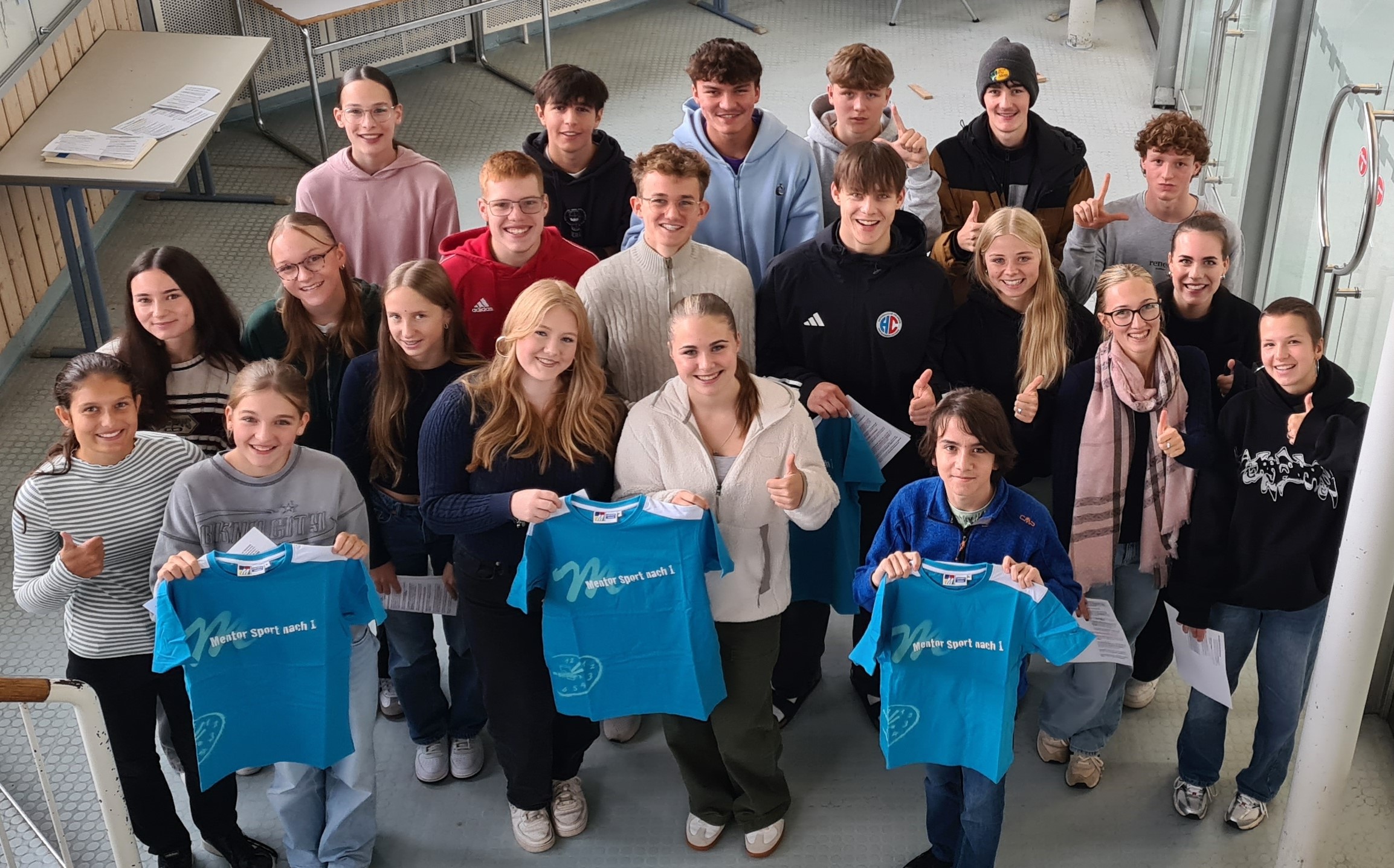 Nach Schulung und Zertifizierung dürfen Sportlerinnen und Sportler (ab 15 Jahren) in sicheren Sportarten Schülergruppen selbständig anleiten. Die Sportmentoren unterstützen die Sportfachschaft außerdem bei sportlichen Aktionen und Veranstaltungen (Wettkämpfe, Bundesjugendspiele, Sportevents etc.). Toll, dass wir sie haben!