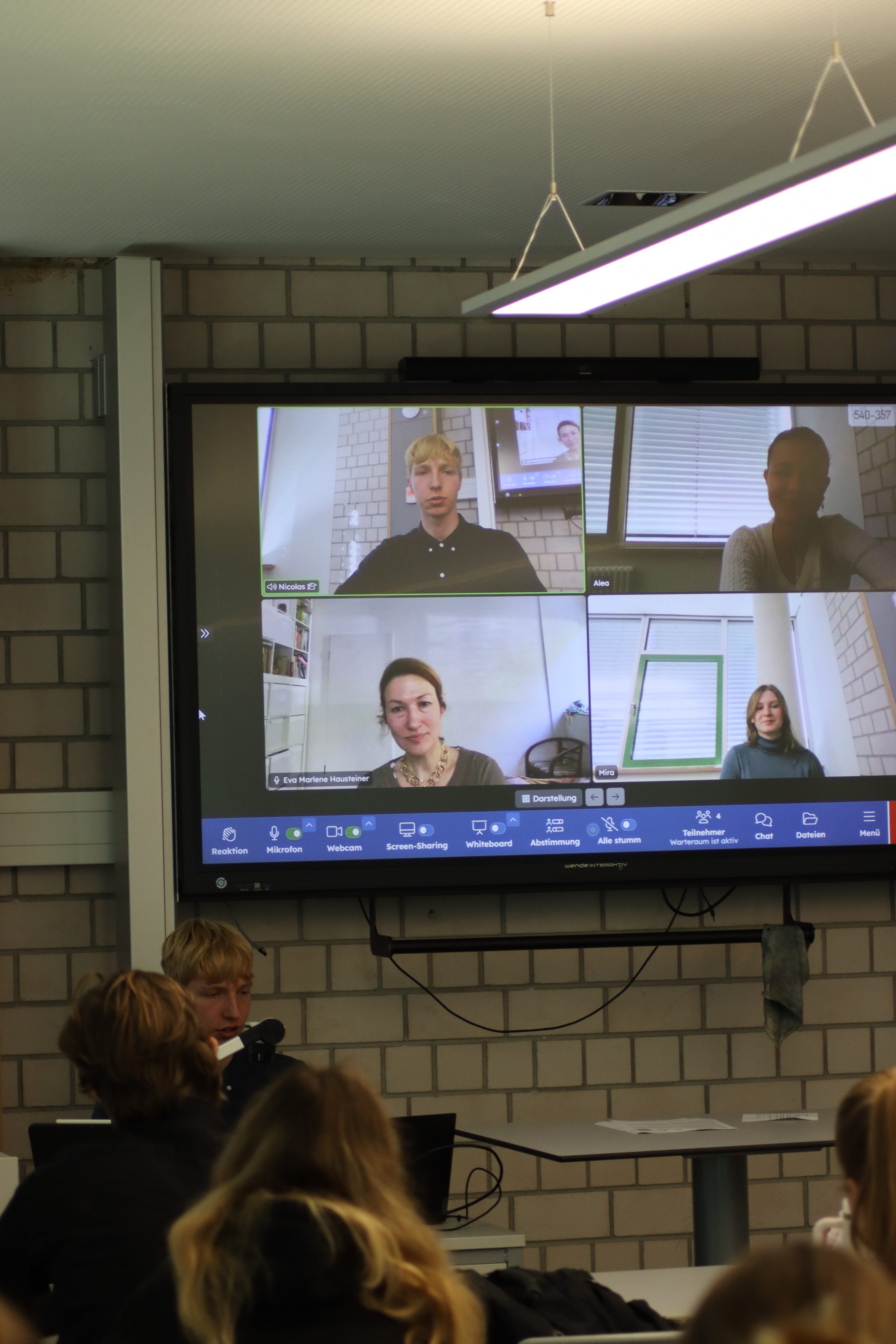 Moderiert von Mira Tursi, Alea Dizdarevic und Nikolas Schrenk, Schülerinnen und Schüler unseres Leistungskurses Politik und Gesellschaft, konnte unsere Oberstufe Fragen an Prof. Hausteiner stellen und ihre Einschätzung zu verschiedenen Aspekten einholen. Die Schülerinnen und Schüler haben sich gut vorbereitet und sowohl das politische System der USA als auch innen- und außenpolitische Aspekte und die Bedeutung der Wahl für Europa thematisiert.